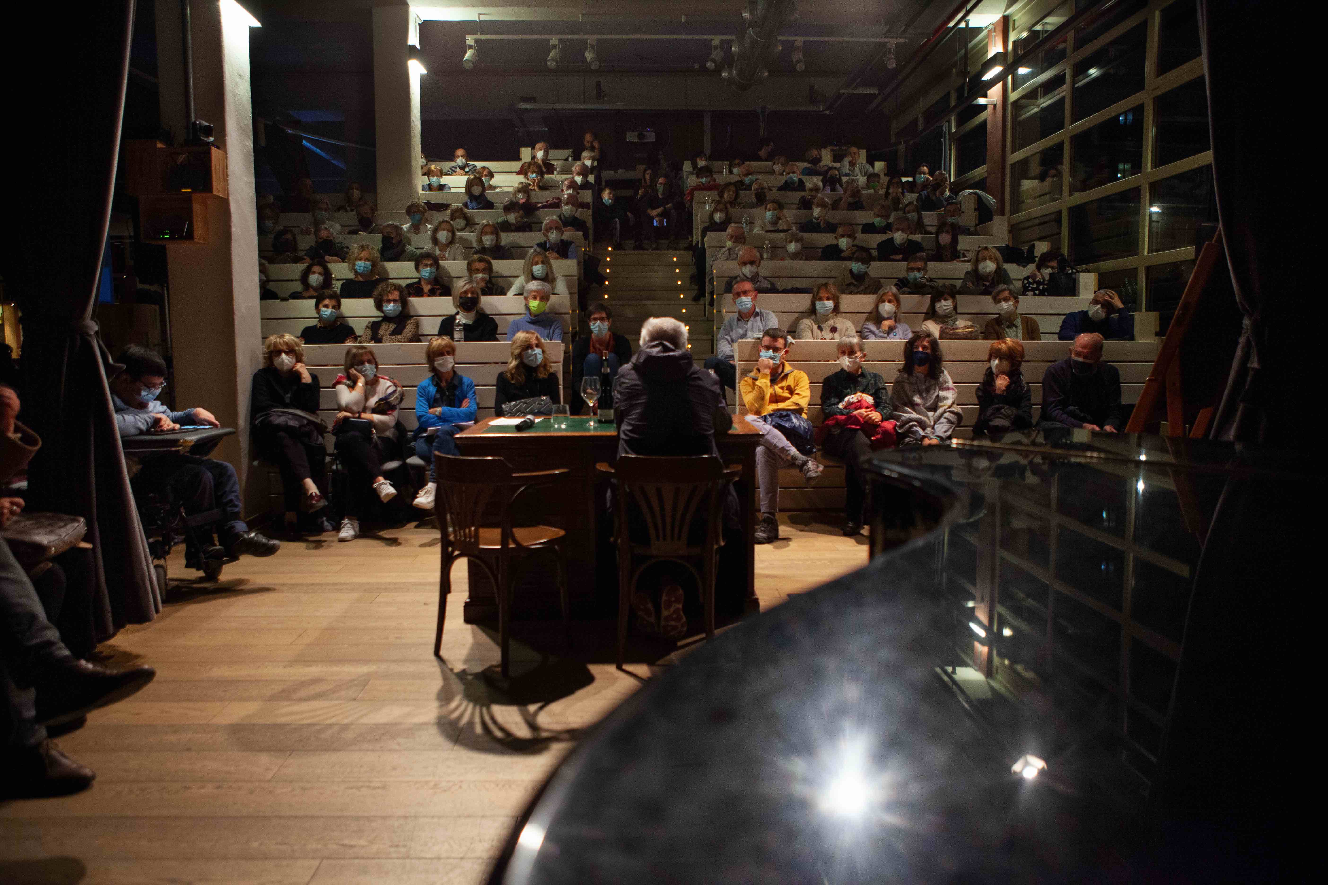 Sabato ho parlato in un teatrino dentro un bel posto dove c’è tanto vino e si mangia da dio. Era da prima del lockdown che non mi prendevo una sera dedicata alla mia unica piacevolezza. Il filo del ricordo di quando da bambino guardavo mio padre che faceva il vino mi ha portato in universi sconclusionati, dove a volte mi sento leggero e altre soffocato. Qui propongo la mia chiacchierata per intero. Passa il tempo di ciò che è raccontabile. Tempesta il racconto di ogni mio passato.