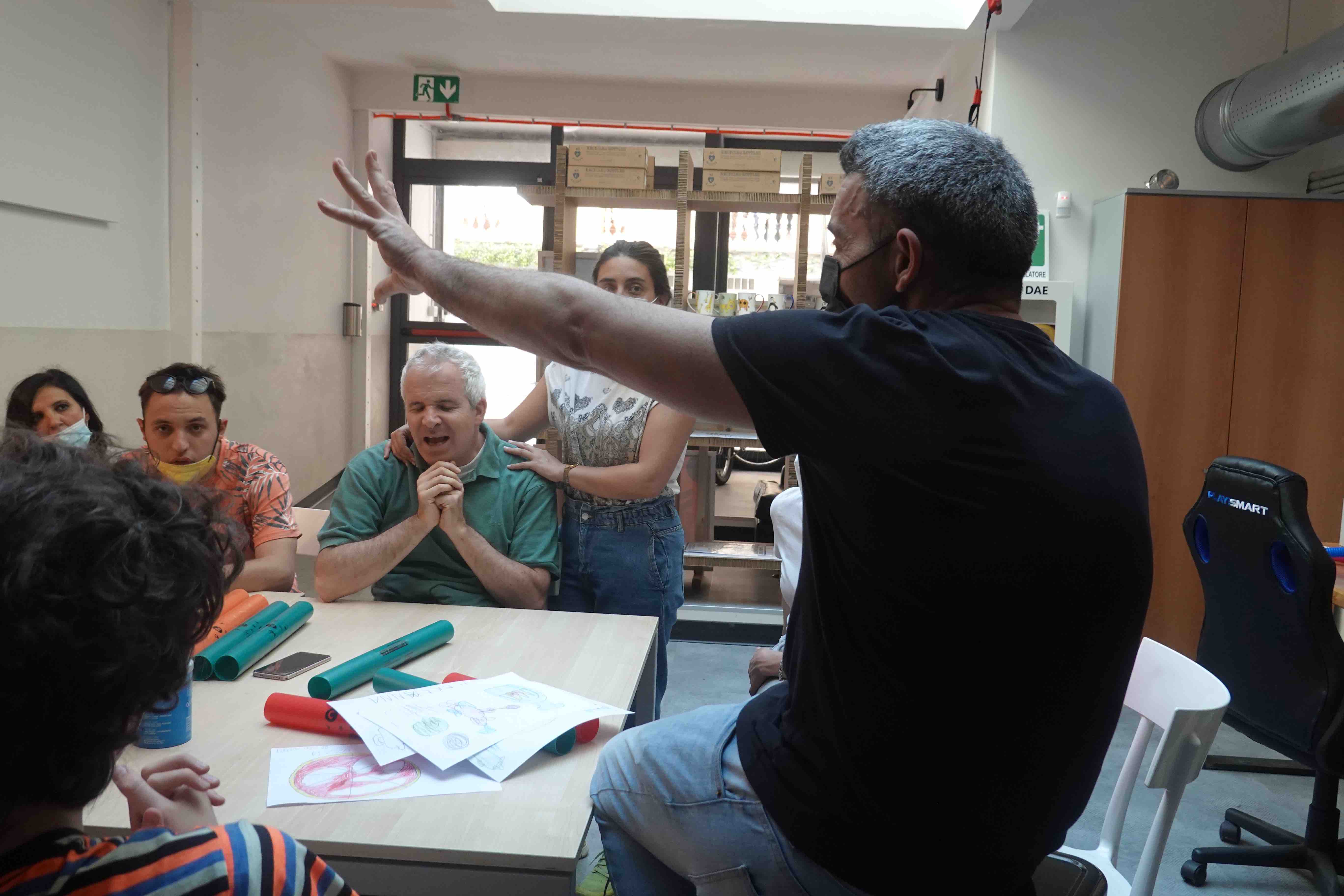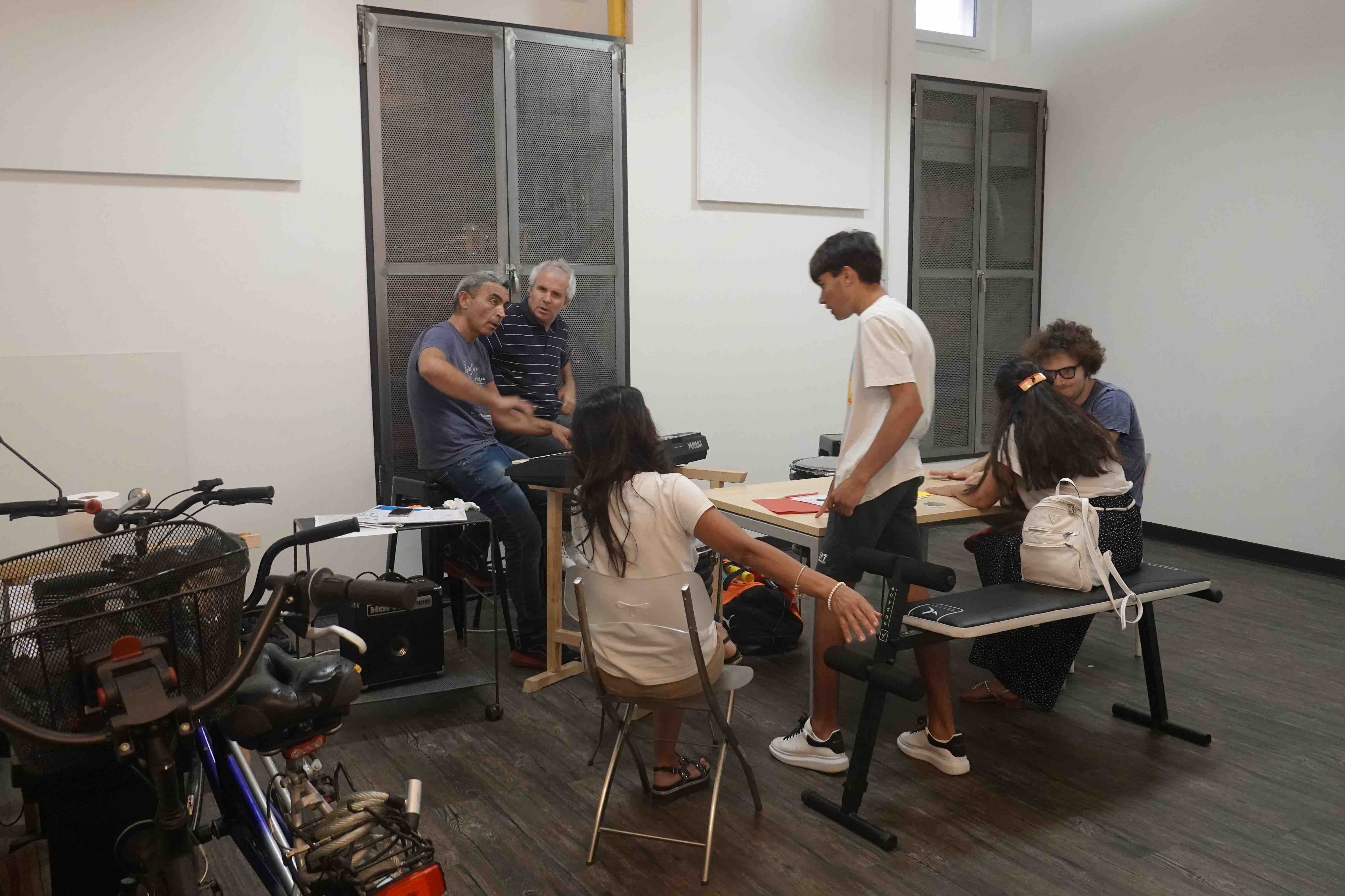 Qui gradualmente i ragazzi stanno iniziando a rapportarsi con gli strumenti musicali. Dagli incontri precedenti di puro training hanno già avuto modo di cominciare a “riconoscere” le note musicali e capire come riuscire a mettere insieme delle semplicissime melodie. Loro sono impazienti vorrebbero rimettersi a battere forte sui loro tamburi e magari far tremare le pareti della nuova struttura. Avranno modo di farlo da settembre quando arriveranno di nuovo da Finale Emilia i Maestri dei Rulli Frulli che li troveranno belli carichi e molto più consapevoli del lavoro che li attende.